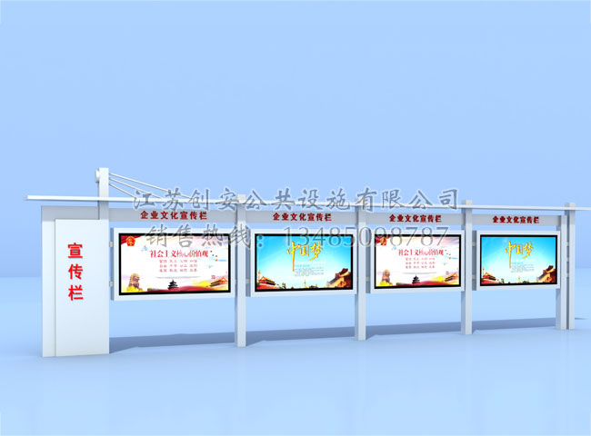 宣傳欄廠家-江蘇創安公共設施有限公司是一家國內知名的專業從事宣傳欄,公交候車亭,精神堡壘,法治宣傳欄,消防宣傳欄,部隊宣傳欄,校園文化宣傳欄整體規劃、設計、生產制作、安裝、售后服務及產品研發于一體的宣傳欄制造有限公司。