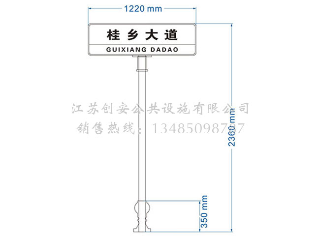 此款路名牌LMP-05采用鍍鋅鋼結(jié)構(gòu),表面采用氟碳金屬烤漆工藝,視窗面板采用鋼化玻璃,燈箱內(nèi)置LED燈。具有外形美觀、表面耐腐蝕、抗風(fēng)性能強(qiáng)、使用壽命長(zhǎng)等優(yōu)點(diǎn)。產(chǎn)品的樣式、尺寸、顏色、材質(zhì)、配置等均可按需定制。