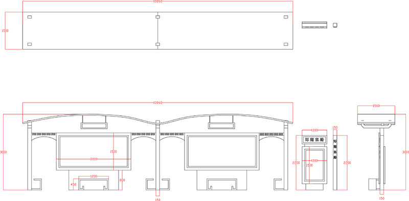 此款仿古候車亭CA-1053采用鍍鋅鋼結(jié)構(gòu),表面采用氟碳金屬烤漆工藝,視窗面板采用鋼化玻璃,燈箱內(nèi)置LED燈。具有外形美觀、表面耐腐蝕、抗風(fēng)性能強、使用壽命長等優(yōu)點。產(chǎn)品的樣式、尺寸、顏色、材質(zhì)、配置等均可按需定制。